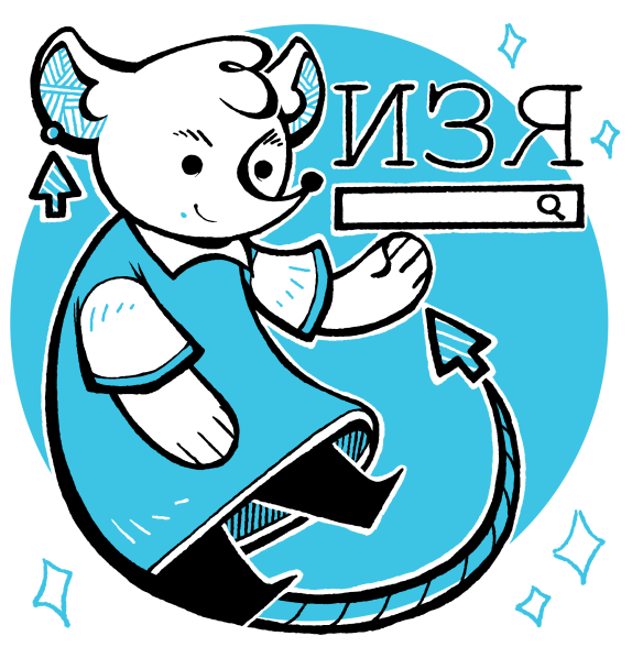 Маскот Изя ...Это крыс. Он очень умное существо, способное быстро обучаться новым вещам, а его длинный хвост достаточно гибкий, чтобы протиснуться в любую щель - это олицетворяет поиск информации. Его имя образовалось от слова «изучать»